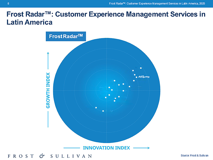 Inteligencia Artificial 30 Jun 2025 Frost & Sullivan distingue a Atento con varios reconocimientos en innovación y CX