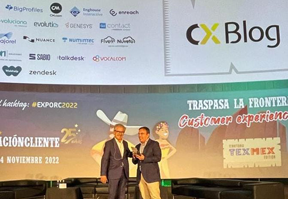 El pasado jueves 24, en el marco de Expo Relación Cliente, la Asociación Española de Expertos en la Relación con Clientes (AEERC) entregó un premio IMPACT 2022 a la empresa GoContact, por la iniciativa CX Blog, proyecto que nació en octubre de 2019, con el objetivo de ofrecer y acercar contenidos, experiencias y opiniones de expertos para el sector contact center & BPO.