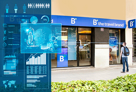 El objetivo de esta digitalización consiste en desarrollar un sistema de publicidad inteligente que permita interactuar directamente con el cliente. Para dar forma a este proyecto, B the travel brand se ha embarcado, junto a Beabloo, agencia especializada en la combinación de marketing omnicanal y big data para el comercio, en un proyecto de cartelería digital, de manera que, a través de una red de pantallas monitorizadas de forma centralizada, se puede mostrar al cliente mensajes publicitarios personalizados, de entretenimiento, contenidos, productos u ofertas en forma de texto, animación o vídeo.