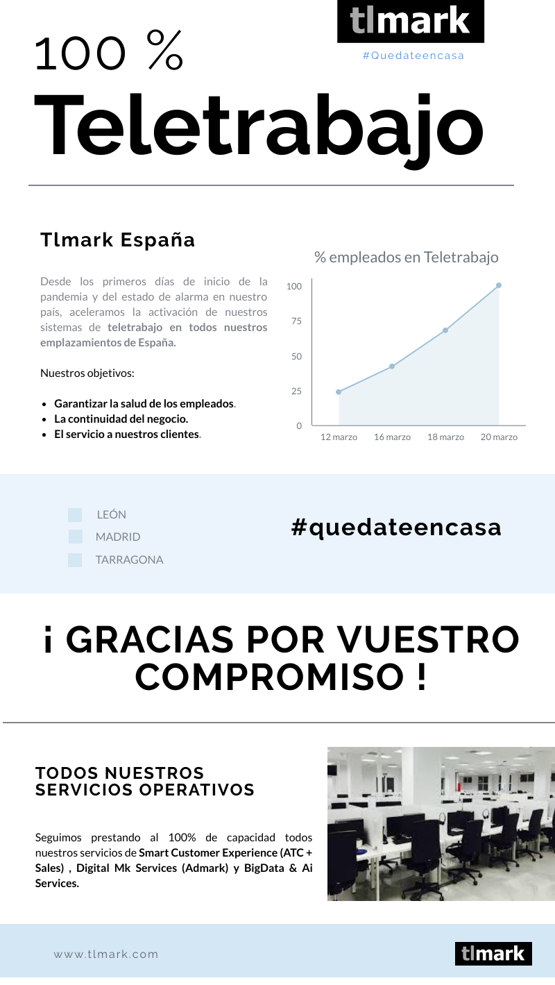Tlmark España acaba de hacer público un comunicado en el que, bajo el hashtag tan popular en estos días de #Quedateencasa, anuncia que ya tiene a todos sus empleados trabajando desde sus casas.