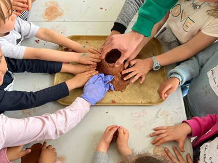 El día comenzó con una recepción y un desayuno. Más tarde, los pequeños fueron dando un paseo hasta el Parque de la Quinta de los Molinos para realizar una actividad de búsqueda de un tesoro. A media mañana tomaron un tentempié saludable para luego regresar a las oficinas a realizar un taller científico y trabajar en un huerto urbano. En el taller, los niños aprendieron cómo funcionan los volcanes y de qué se componen los minerales, entre otras cosas.