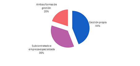 Las cifras ponen de manifiesto que el 64% de las empresas utilizan medios propios en alguna medida, ya sea total (44% de las empresas) o parcialmente (20%), lo que da idea del todavía potencial de crecimiento de la subcontratación a empresas especializadas.