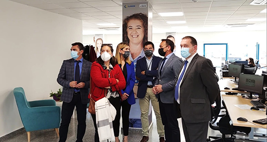 Las nuevas oficinas del área de contact center de ILUNION contaron el jueves, con la visita del consejero de Transparencia, Seguridad y Emergencias, Antonio Sánchez Lorente; el director general de Seguridad Ciudadana y Emergencias, Antonio Luis Mula, la presidenta del Consejo Territorial de la ONCE en la región de Murcia, María Teresa Lajarín Ortega; la directora general de ILUNION Contact Center BPO, Susana Sánchez Herrán, y el director nacional de ILUNION Emergencias, Pedro Onieva Alcalá.
