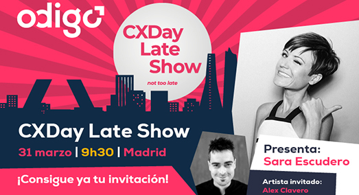 CXDay Late Show (Not too late), la 5ª edición del Odigo CXDay, tendrá lugar el 31 de marzo a las 09:30 h. en el Teatro Amaya de Madrid. Y esta es la agenda del evento:
