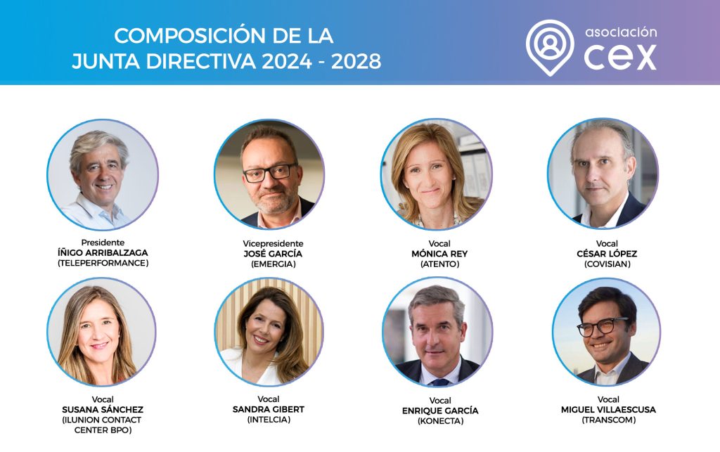 Íñigo Arribalzaga (presidente de Teleperformance España) ha ratificado su cargo como presidente de la Asociación CEX (Asociación de Compañías de Experiencia con Cliente), acompañado de José García (director general de emergia) como vicepresidente de la Asociación, en la reunión de su Asamblea General Ordinaria y Extraordinaria que ha tenido lugar este jueves. El punto de la renovación de su Junta Directiva, con la presentación del programa de actuación de 2024-2028, ha ido uno de los más relevantes de la reunión.