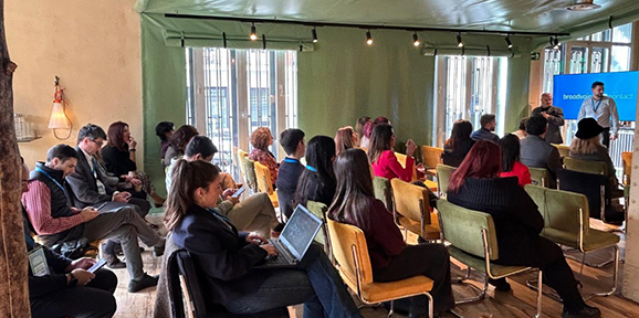 El director comercial de Broadvoice | GoContact en España, Óscar Díez, dio la bienvenida a los presentes en el exclusivo espacio Glamping de Comet Retiro (Madrid). Tras ello, el reconocido divulgador tecnológico Javier Sirvent expuso, ante decenas de reconocidos profesionales del sector, cómo la Inteligencia Artificial puede ayudar a las empresas a ser más eficientes y conseguir sus objetivos.