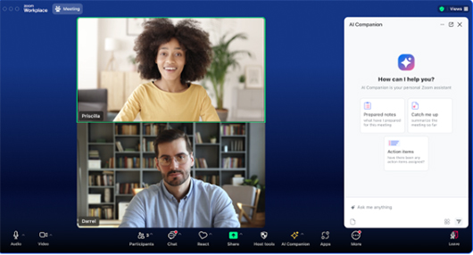 - Incrementar la productividad con AI Companion, incluido sin costo adicional con los servicios pagos en cuentas Zoom, que permite redactar mensajes de chat, tomar acciones rápidas y generar resúmenes de conversaciones.